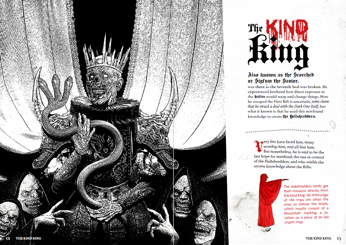 You probably already know the world, the bleak dying lands of Mörk Borg. Now fast-forward a few decades, as man discovered crude oil and its properties. Of course the desperate bastards got greedy built machines to extract even more of the substance. In their never-ending search, they dug too deep, and accidentally opened a gate to Hell.